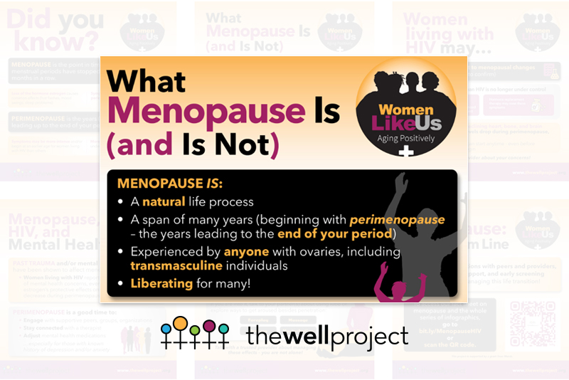 On September 18, National HIV/AIDS and Aging Awareness Day, take a moment to share these infographics – part of The Well Project's Women Like Us – Aging Positively program – and spread knowledge about menopause and HIV. Let's talk about it!
