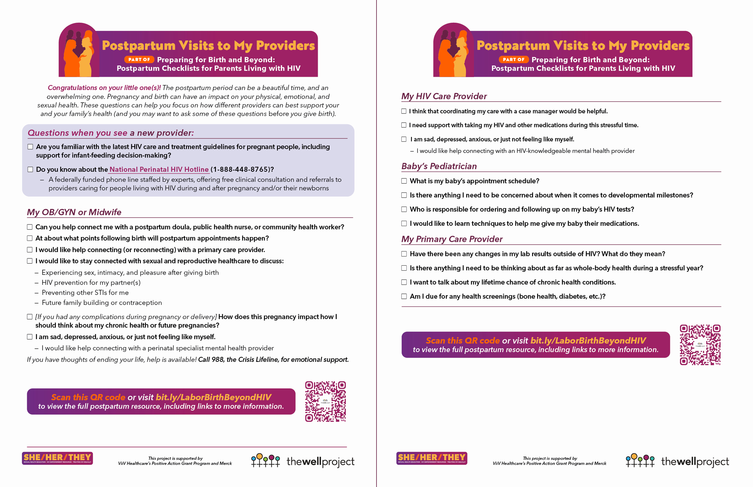 View the full resource Preparing for Birth and Beyond: Postpartum Checklists for Parents Living with HIV